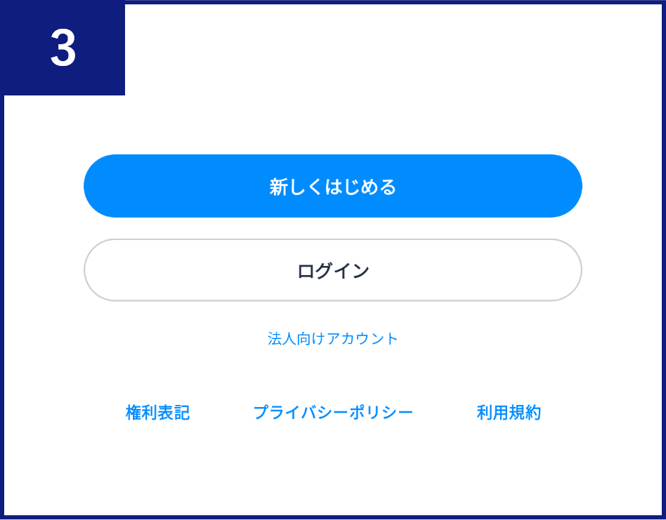「新しくはじめる」画面が表示されるので、GoogleかAppleのアカウントで登録します。
