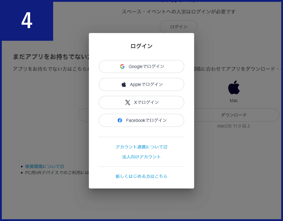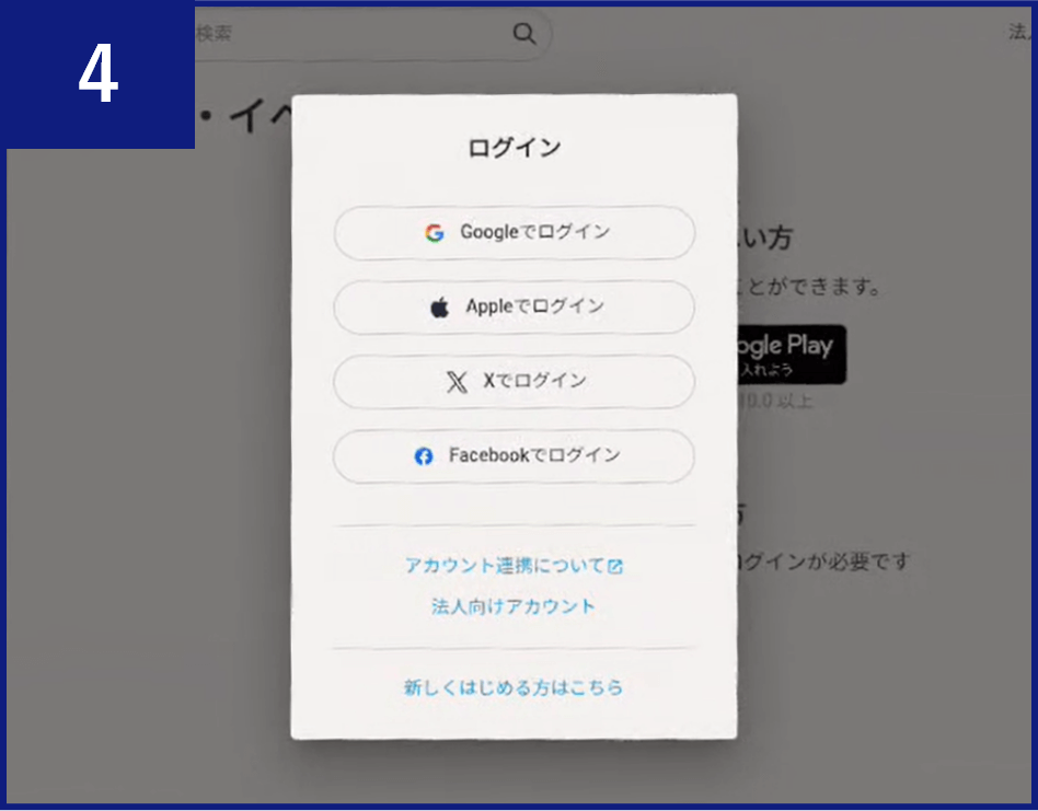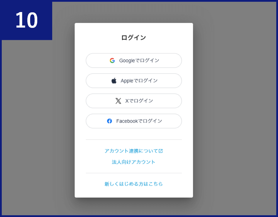 「ログイン」画面が表示されるので、下にある【新しくはじめる方はこちら】をクリックします。