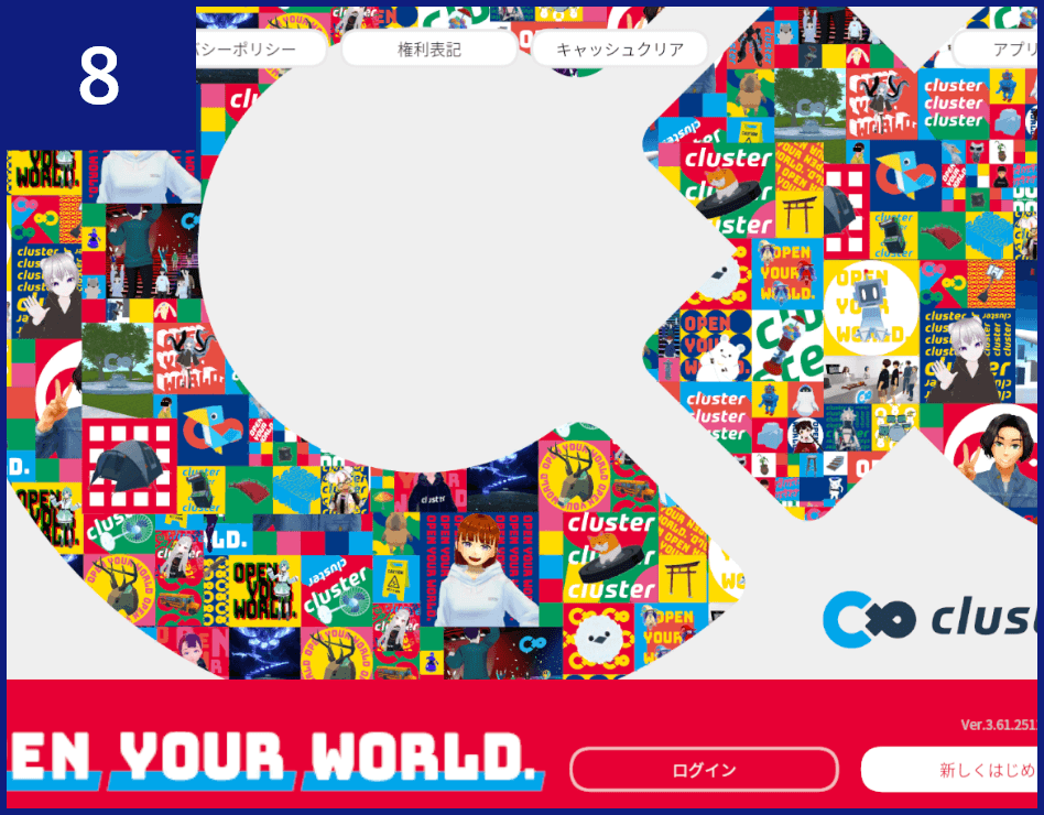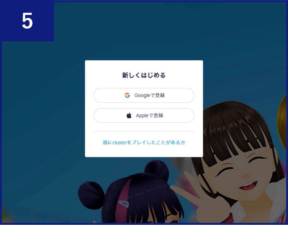 「cluster」アプリが立ち上がるので、画面の【新しくはじめる】ボタンをタップし、案内に従いアカウントを作成します。