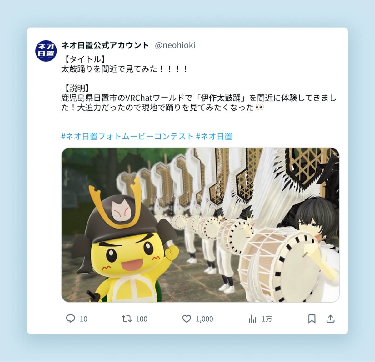 ・ハッシュタグ #ネオ日置フォトムービーコンテスト を付すこと