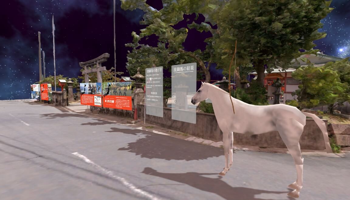 「大汝牟遅神社」は、日置市が初めて手掛けたVRChatのワールド(プロトタイプ)で、吹上町にある神社をリアルに再現したワールドです。毎年11月23日に神社で開催される「伊作流鏑馬」や「オリジナル鹿児島弁おみくじ」を楽しむことができます。 メタバースならではの流鏑馬をぜひ体験してみてください!