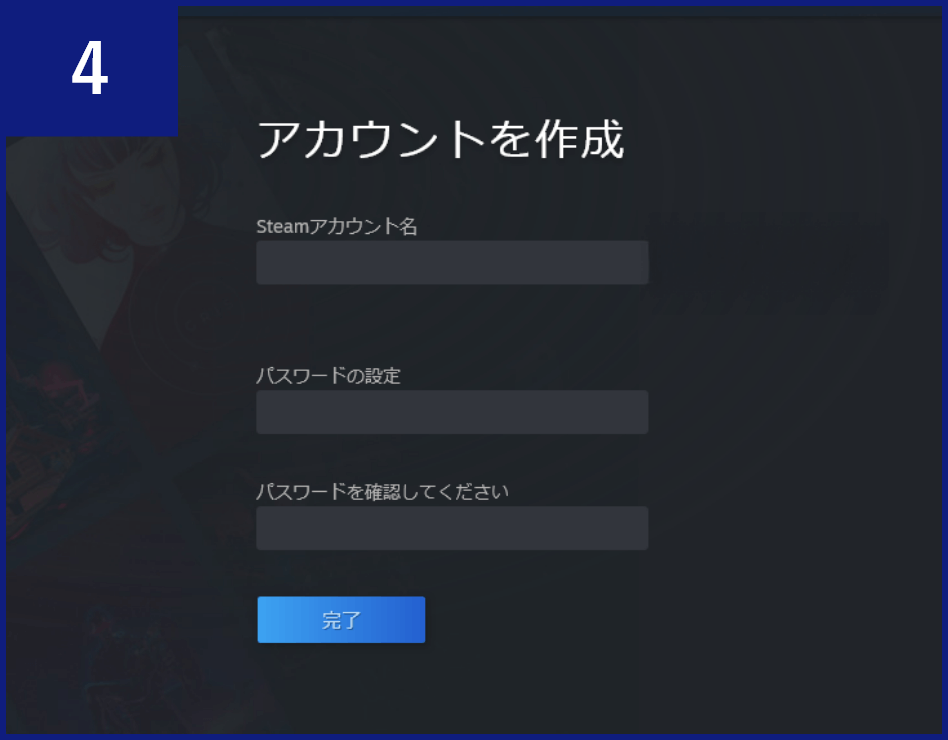 - Steamのアカウントを作成し、