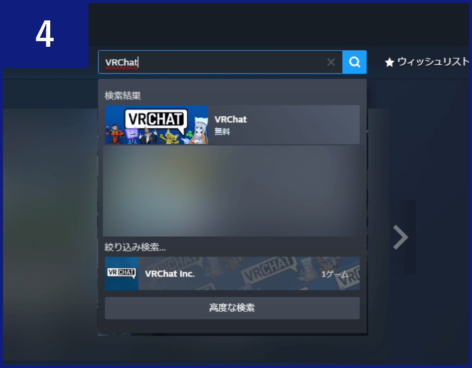 検索窓の下に検索結果が表示されるので、その中の【VRChat】をクリックします。