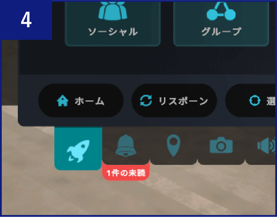 「VRChat」アプリに通知が届いているので、【通知のタブ(鐘のマークのタブ)】をクリックします。