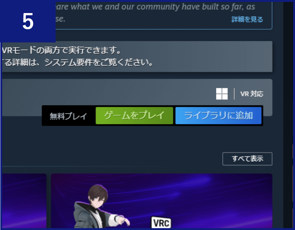 VRChatの詳細画面が表示されるので、ページ中ほどの【ゲームをプレイ】ボタンをクリックし、アプリをインストールします。