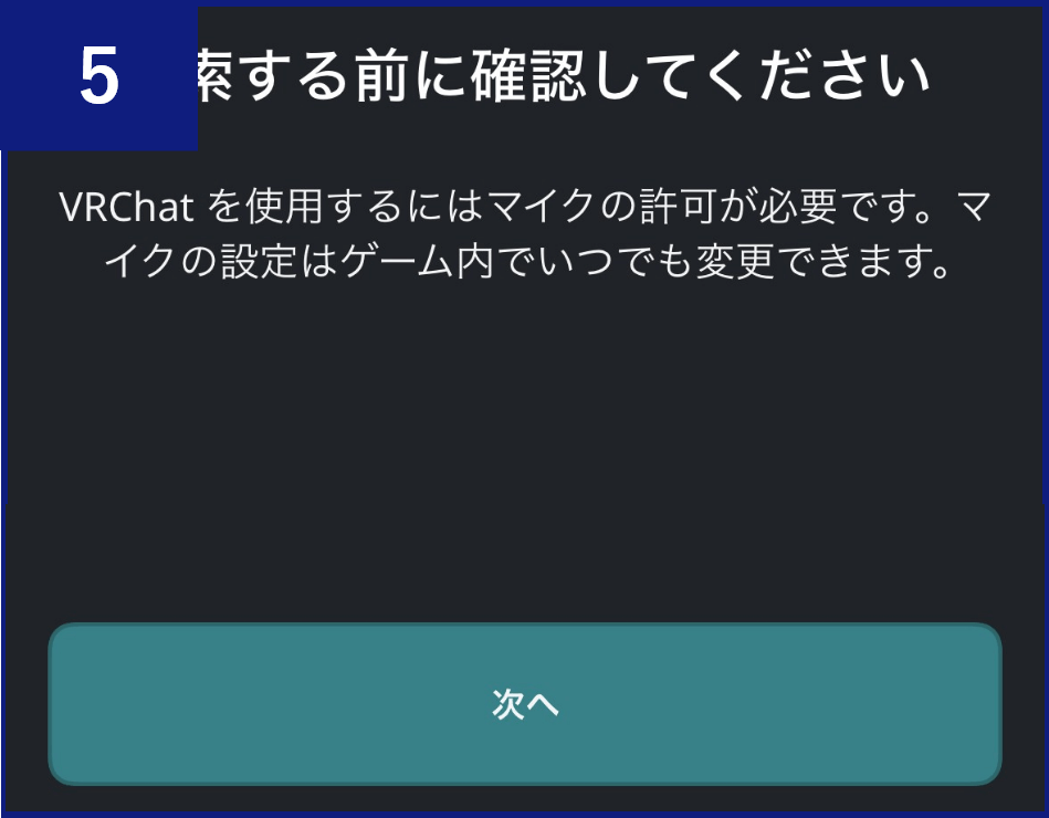 マイクの許可についての画面が表示されるので、【次へ】ボタンをタップし、マイクの設定を行います。