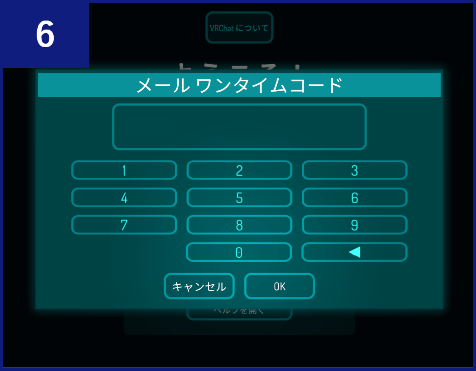 VRChatから件名「Your One-Time Code is ○○○」というメールがVRChatアカウントのメールアドレスに届くので、メール内のコードを入力し、【OK】ボタンを押します。