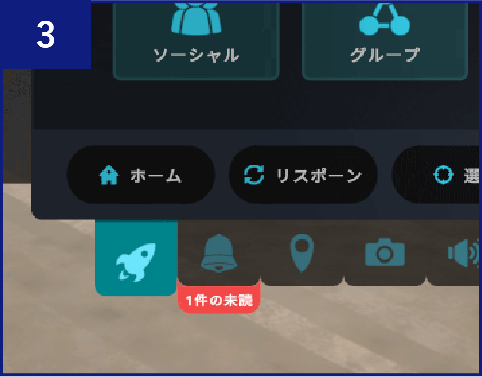 「VRChat」アプリを起動し、コントローラーの【B】ボタンか【Y】ボタンを押し、メニューを表示させます。
